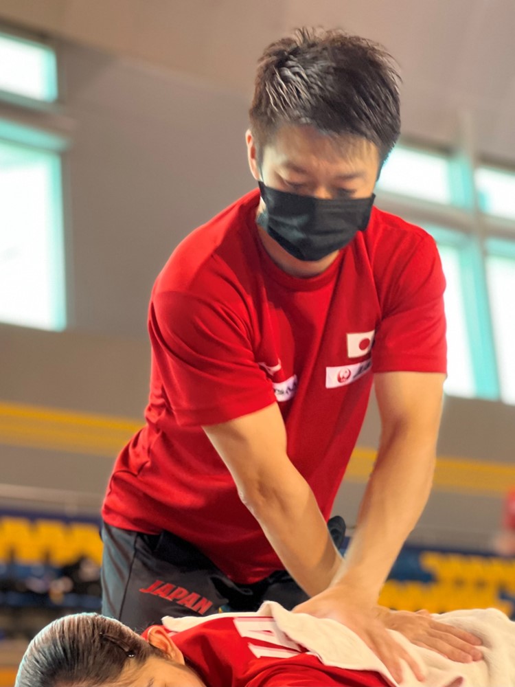 院長は日本オリンピック委員会の強化スタッフ(医学・科学スタッフ)としても活動しており、過去には体操女子日本代表チームの合宿や国際大会にトレーナーとして帯同、全日本選手権や全国学生選手権大会(インカレ)や国内のトップ選手に同行しケアをした実績もあります。